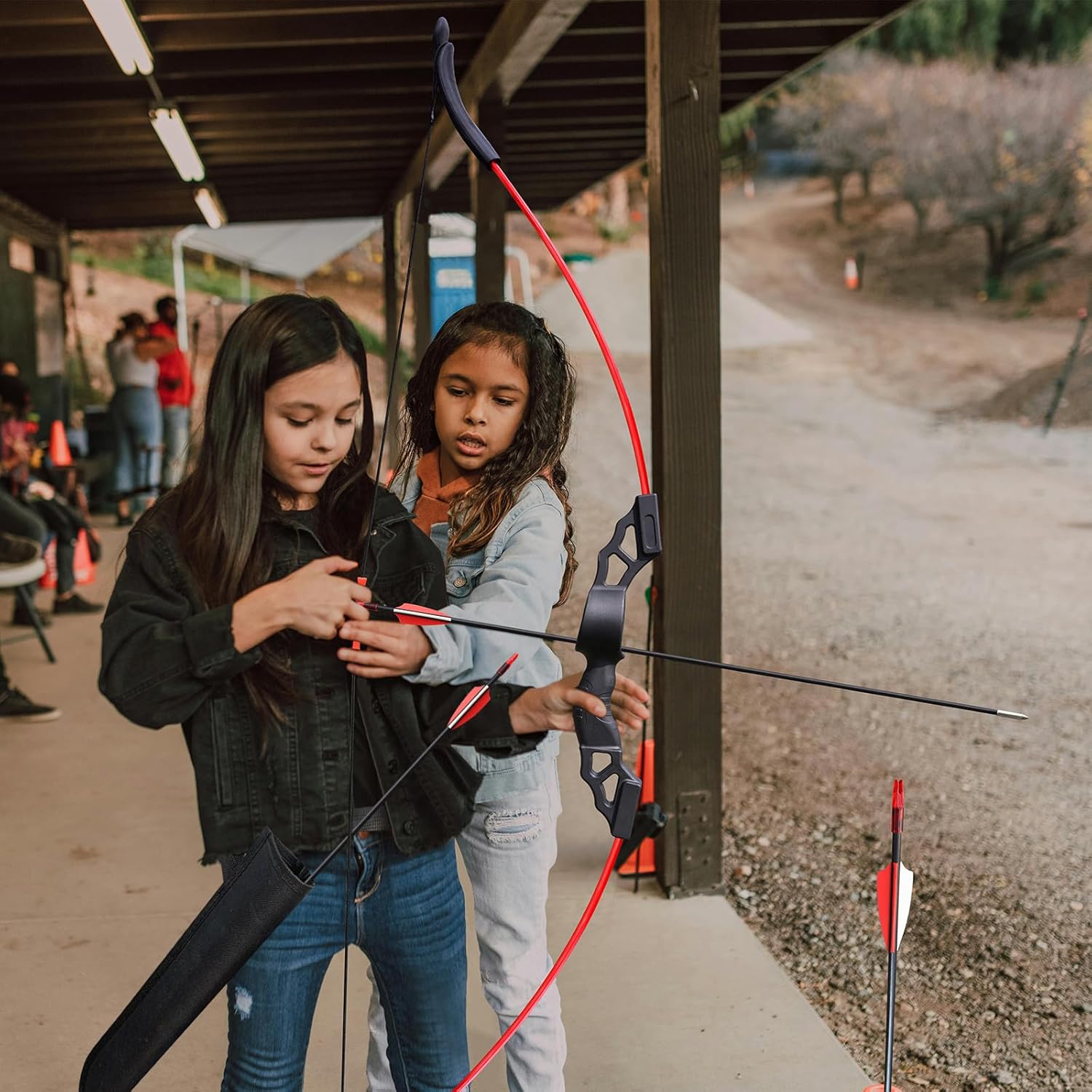 - [Ideal Bow and Arrow Set] This bow and arrow set is the ideal starter set for youth and adult beginners aged 12+. Improve motor skills, coordination and teamwork through archery games. With its unisex, right- and left-handed design and value-priced accessories, it makes a safe, educational and memorable gift for beginners and teens.