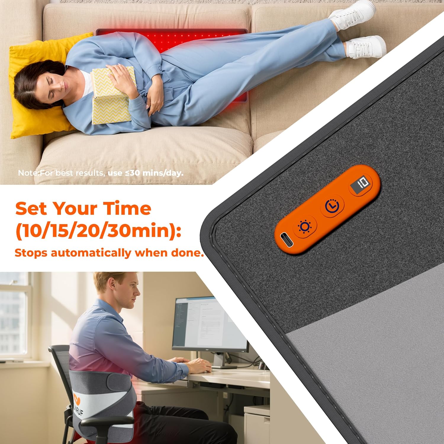 - 【10000mAh Rechargeable Cordless Therapy】Enjoy complete freedom of movement with our powerful 10000mAh rechargeable infrared light therapy. The long-lasting battery provides up to 8 sessions per charge - no cords or outlet dependence. This cordless red light therapy for body design means you can use it anywhere, anytime - at home, office, outside, or while traveling.