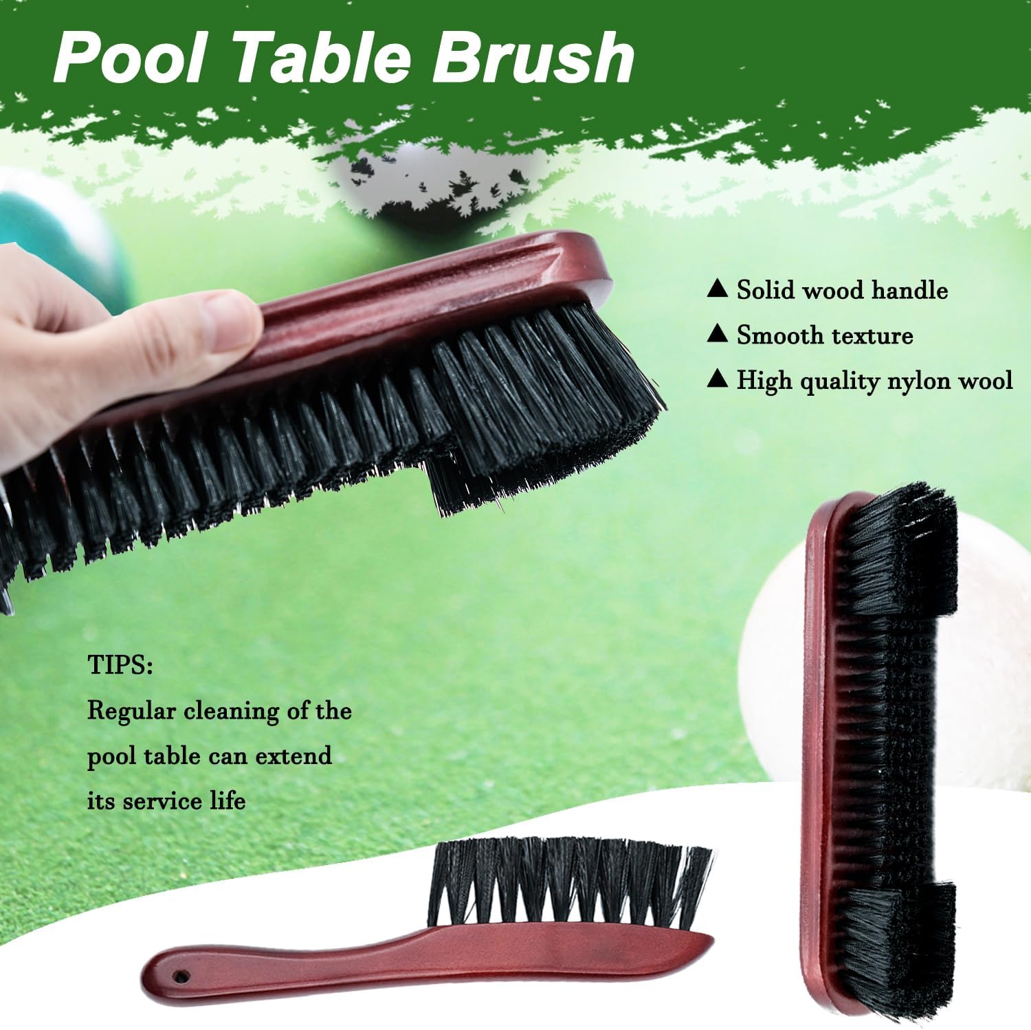 - 【HIGH QUALITY】: The pool table accessories are made of high quality materials, billiard ball rack are made of wood material, precise size, smooth surface, giving you a precision hitting experience. The cleaning brush is made of solid wood handle and high quality nylon, smooth feel, not easy to lose hair, easy to clean.