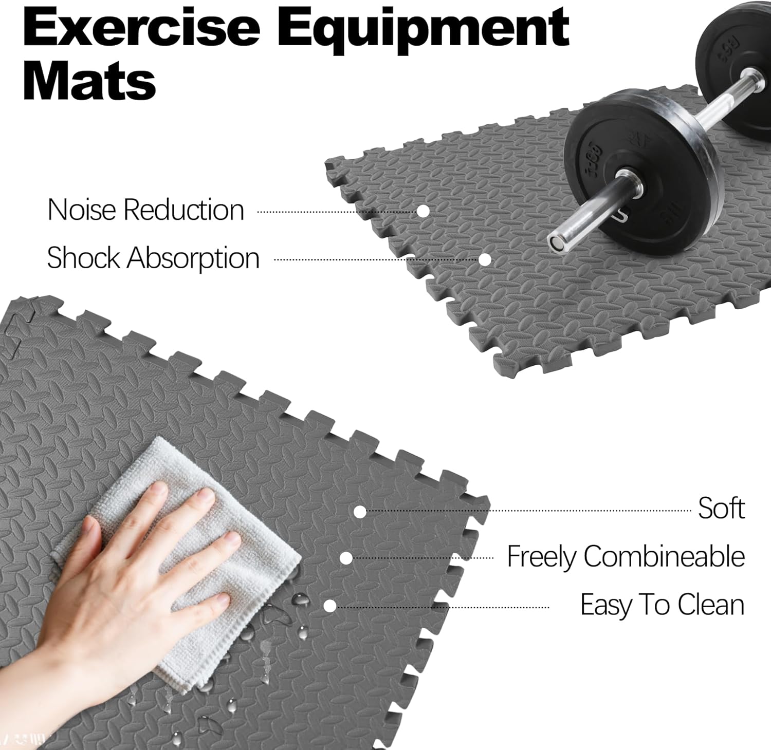 - Multi-Surface Protection with Puzzle Exercise Mat: Crafted from non-toxic, high-density EVA foam, these gym mats shield floors from scratches, weights, and equipment impacts. The textured, non-slip surface ensures stability during HIIT, yoga, or weightlifting, while the waterproof design resists sweat and spills for easy wipe-downs
