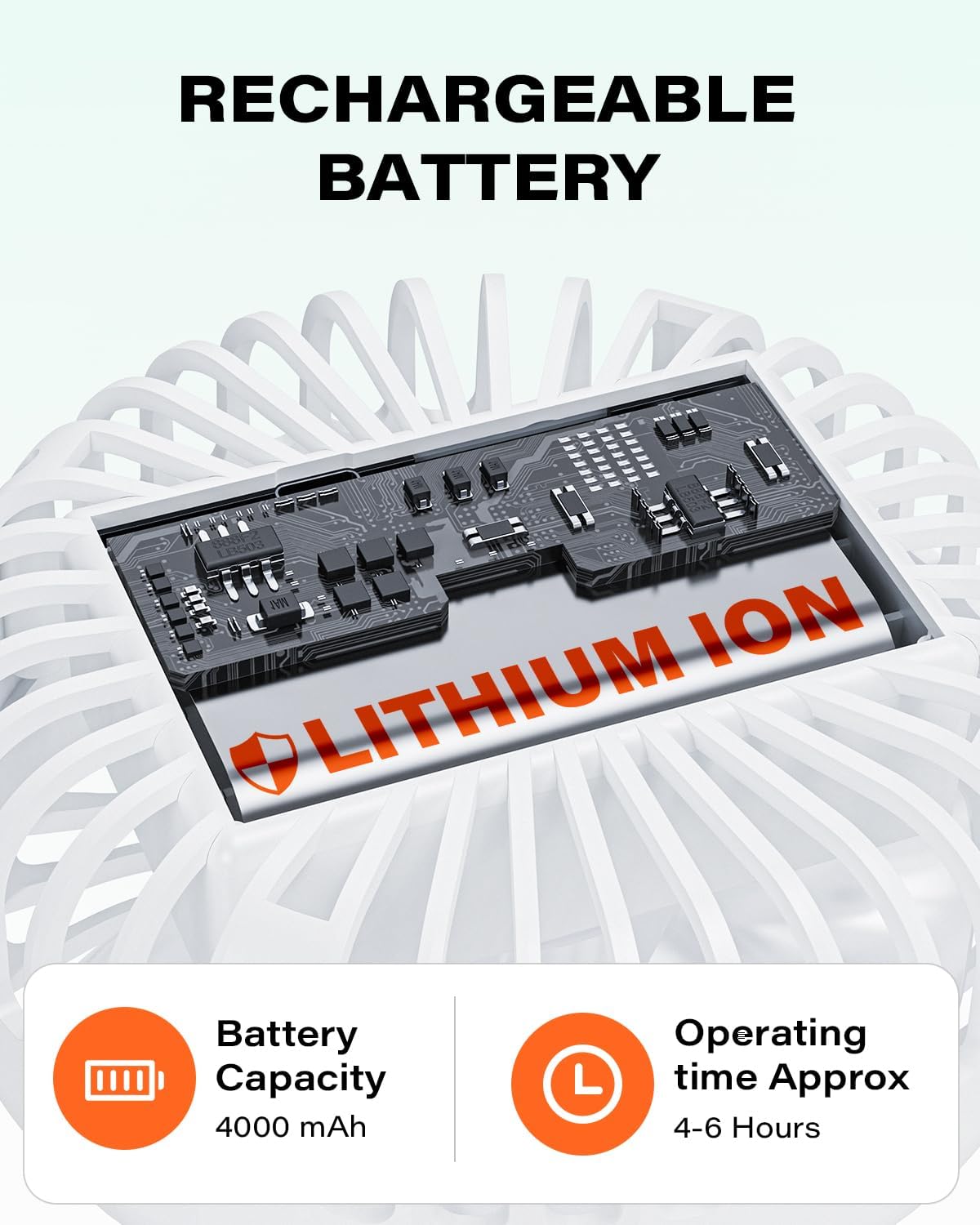 - Long-Lasting Battery for Full Rounds: Equipped with a 4000mAh rechargeable battery, the fan for golf cart delivers 4 to 6 hours of continuous airflow—keeping you cool throughout your entire game.