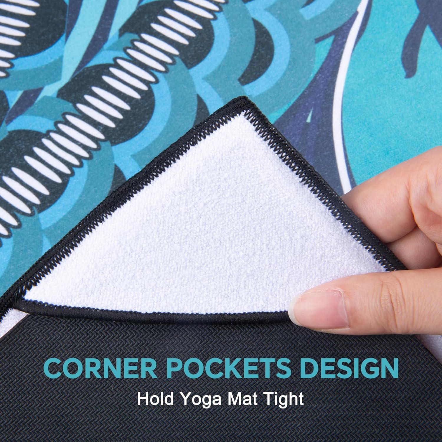 - Corner Pockets Design: Features 4 corner pockets on the backside, the non slip yoga mat towel helps secure and hold onto the mat firmly. This allows you to focus your mind, body and breath on the yoga practice, without worrying about bunching.