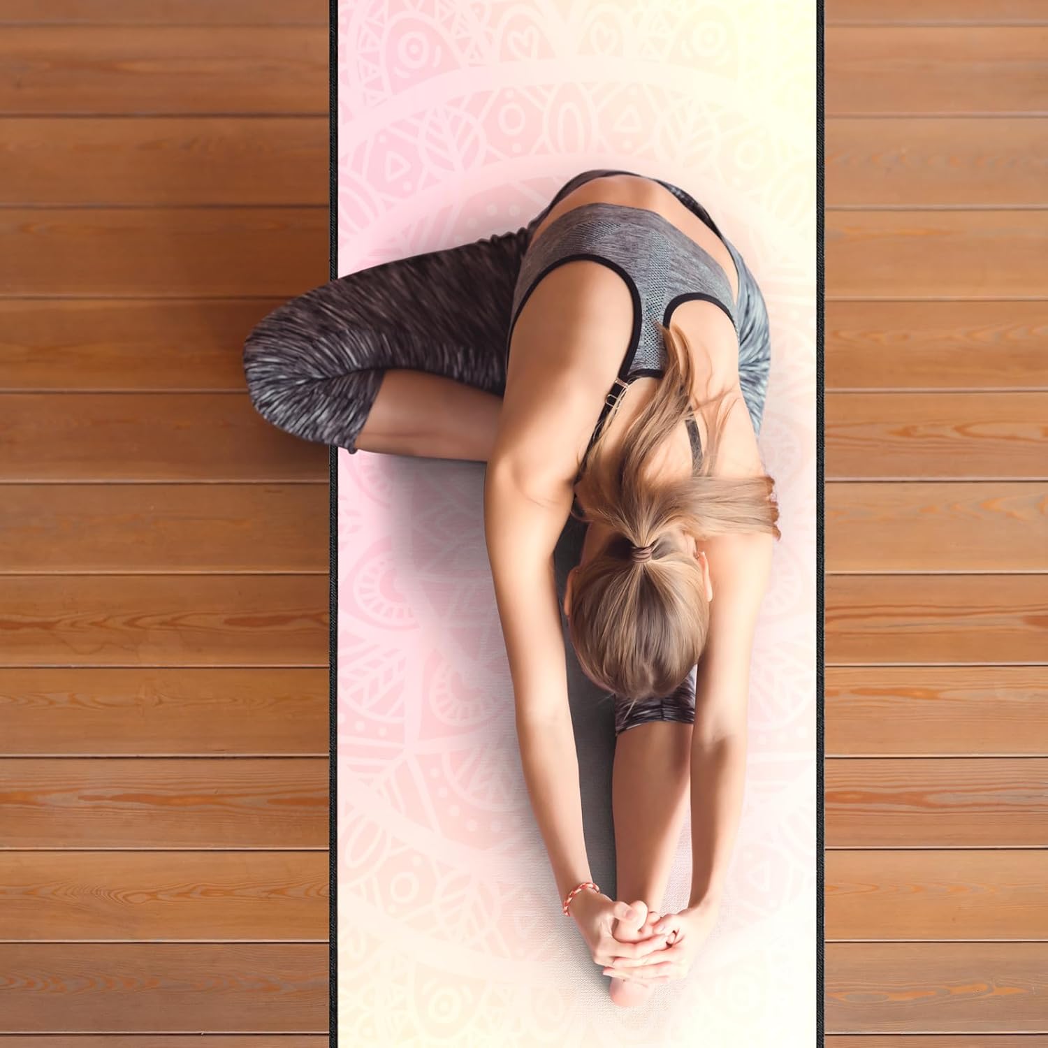 QiyI Yoga Mat Towel with Corner Pockets, Non Slip Sweat Absorbent Hot Yoga Towels, Soft Yoga Blankets with Travel Bag, Skidless Mat Cover for Workout, Gym, Fitness - 70"x26", Gradient Mandala